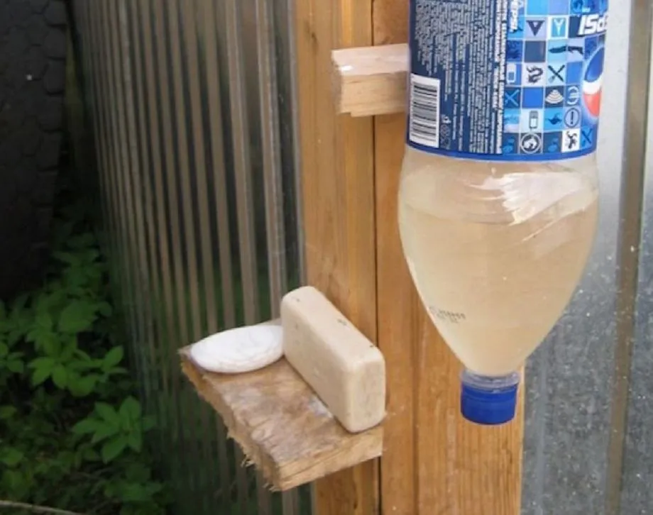 В качестве основы для изготовления устройства рекомендую взять баллон из-под воды. В среднем, один человек во время умывания тратит от 1,5 до 2 л. Пластиковой пятилитровой баклажки хватит для комфортных процедур двух персон на пикнике или при работе на даче.