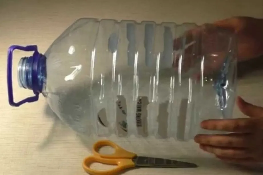 Временный умывальник из бутылки можно сделать за пять минут. При выборе емкости рекомендую взять вариант из крепкого материала с ручкой. Переворачиваю баллон, в дне прожигаю отверстие. Если нет под рукой паяльника, беру обычный гвоздь, диаметром 3 мм. Разогреть металл можно при помощи: