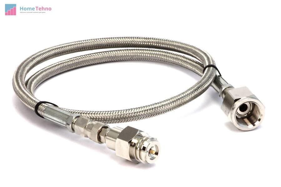 На рынке можно найти шланги разной длины, но по нормам она должна быть не больше 4 м. Диаметр штуцеров бывает ½ или ¾ дюйма.