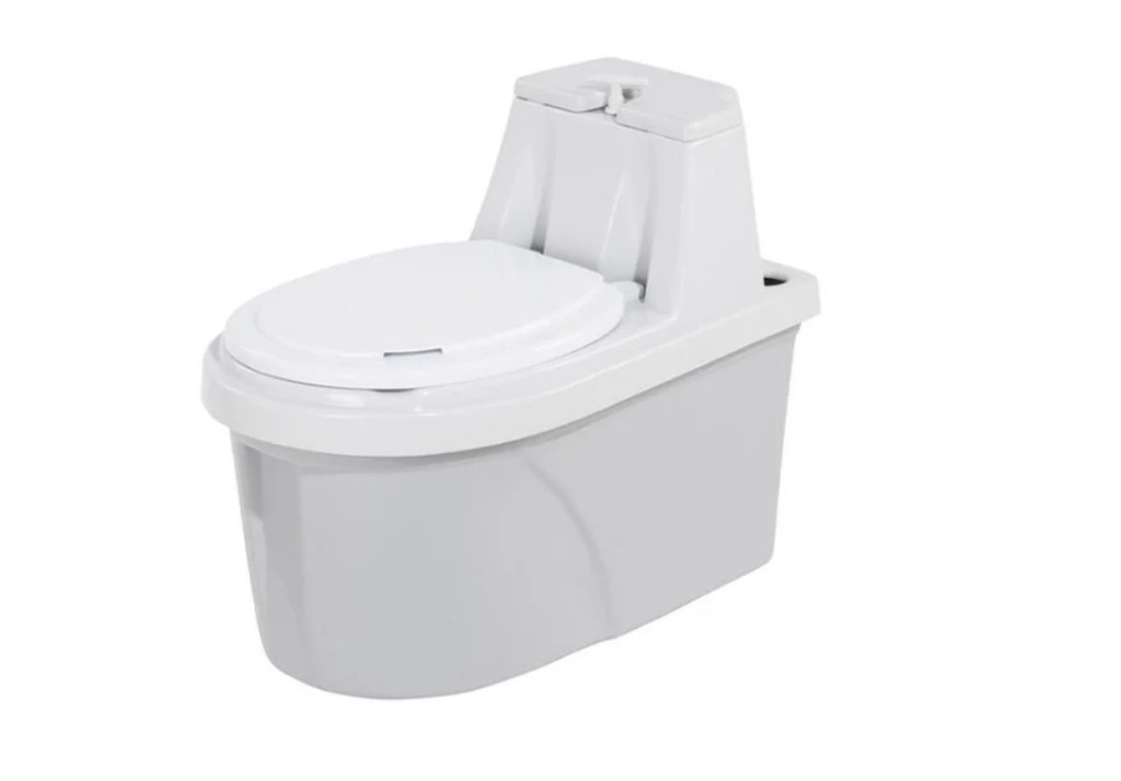 Полипропиленовый компактный туалет, легкий и прочный, создан для стационарной установки. Внешне уборная напоминает обычный унитаз, он крепиться к полу. Смывной бачок наполняется торфом и нажатием рычага высыпается в накопительный резервуар. Вместительная ёмкость для отходов (120 литров) гарантирует долгое использование без необходимости ее очистки. В результате биологической реакции на основе торфа испражнения перерабатываются в компост.