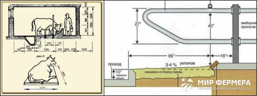 - следует не слишком расширять стойло, во избежание испражнения животным в кормушки и поилки;