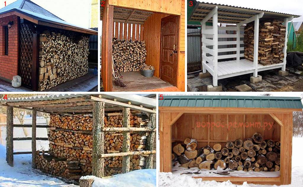 В местах с суровой континентальной зимой предпочтение нужно отдать проветриванию, поз. 4. Лед, как известно, сублимирует (переходит в пар без плавления) и на сибирском морозе, только медленно. А вот в краях с мягкой и тем более «гнилой» зимой средиземноморского типа, дрова нужно как следует укрыть от осадков, поз. 4, развернув дровяник тылом к господствующим ветрам.