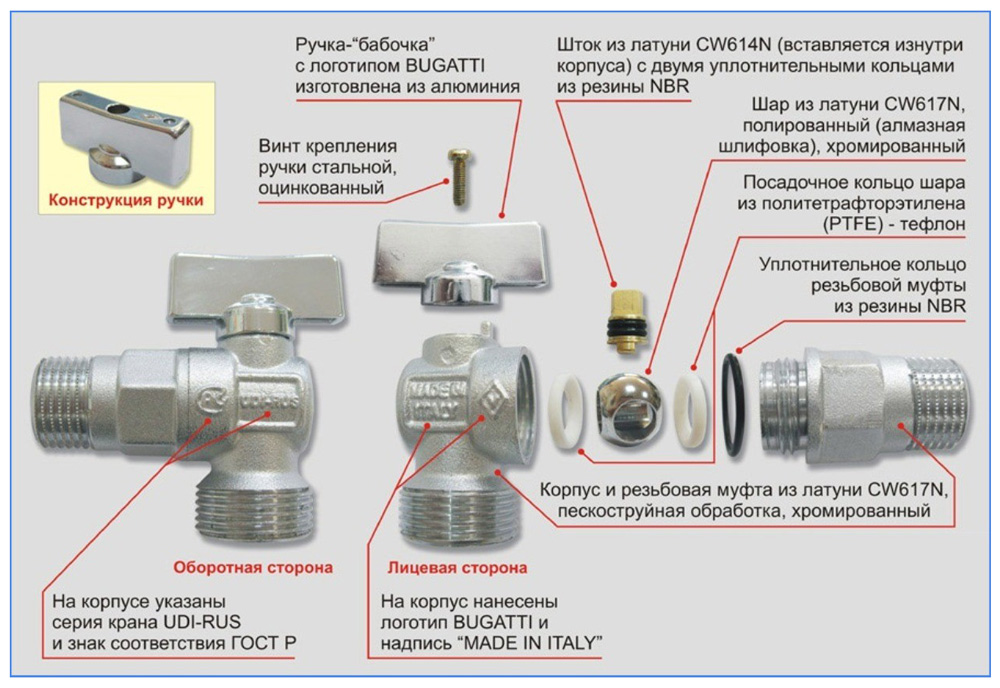 Краны из разных материалов отличаются по своим характеристикам, и при подборе арматуры необходимо подбирать изделия, соответствующие материалу труб.