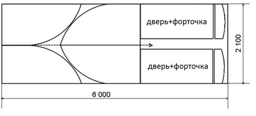 При выборе чертежа обратите внимание на расстояние между арками. Этот показатель должен составлять 65 см, что является наиболее подходящей длиной для указанной толщины материала. Ширина дверей по чертежу производителя составляет 90 см