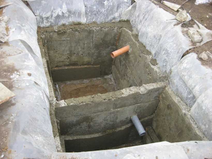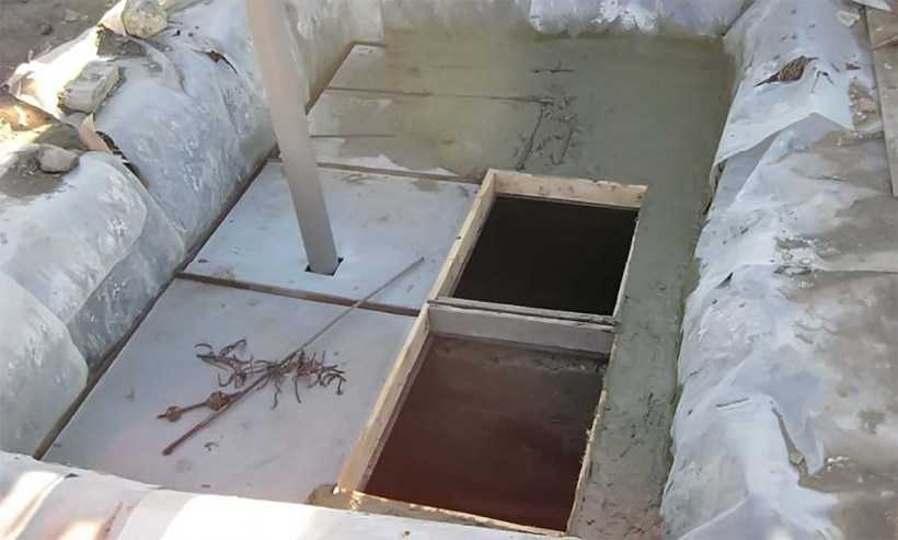 Чтобы неочищенные отложения не просочились в грунт, дно первой камеры нужно залить бетоном. Днище второго резервуара должно быть засыпано гравием или песком.