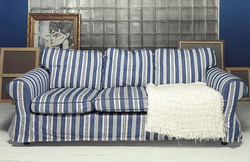 Если же полоски имеют яркую расцветку, то диван окажется в центре внимание и станет изюминкой дома
