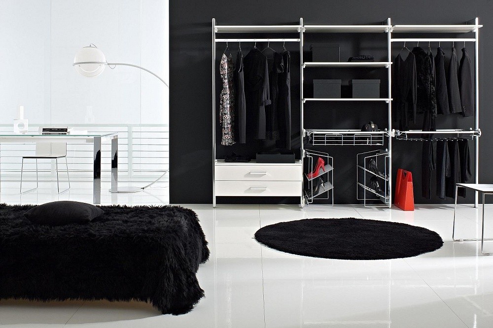 Конечно, закрытые гардеробные системы хороши тем, что возможный беспорядок будет надежно спрятан за дверями, но если места катастрофически мало, лучше не использовать перегородки, ширмы, створки и прочие разделители, а ограничиться четкой системой полок и вешалок.
