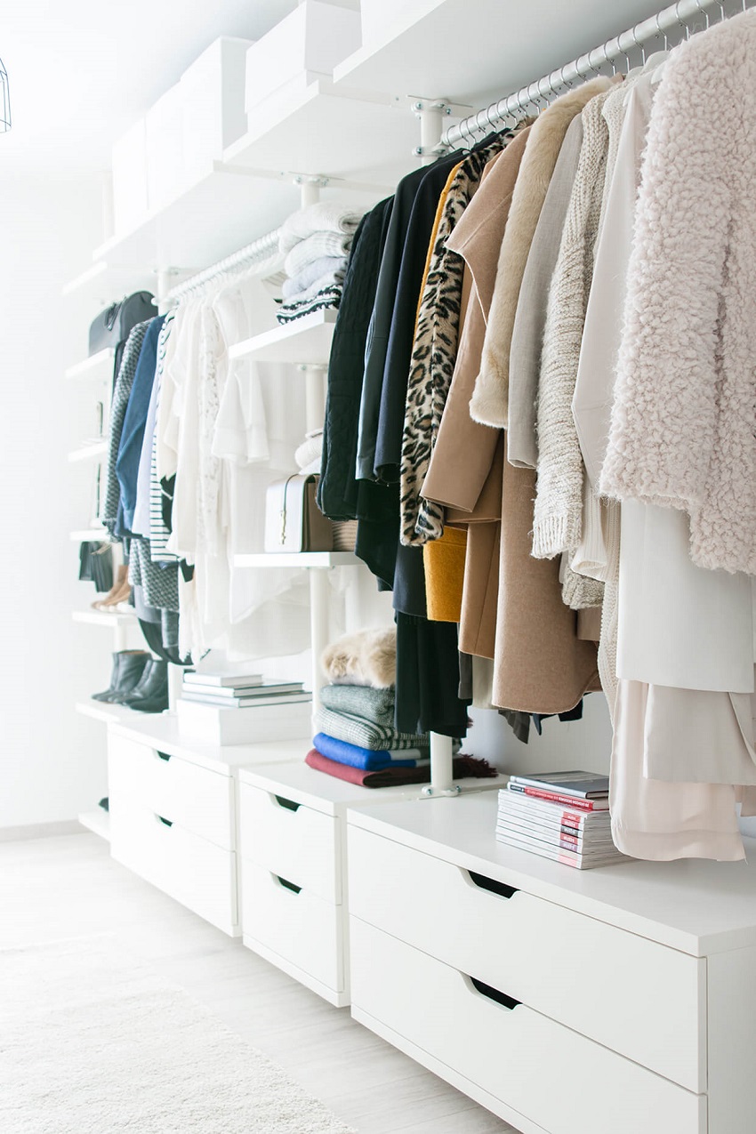 - вещи, которые постоянно носят, тоже должны быть на виду – на штангах или в ближайших к остальным ящиках;