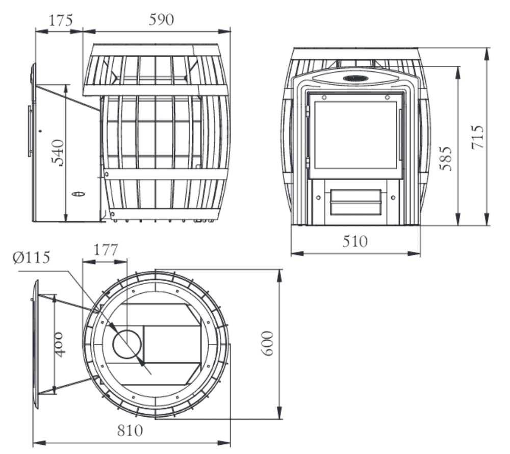 Ниже на схеме приведен пример печи с открытой каменкой: