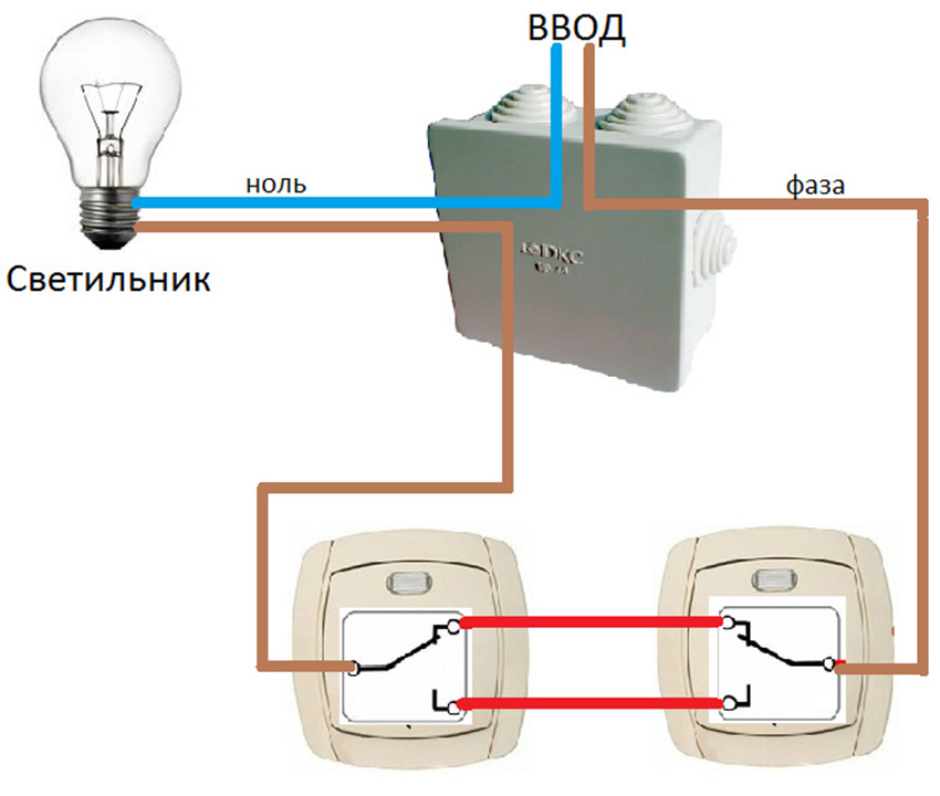 Порядок установки проходных выключателей на 2 точки: схема подключения