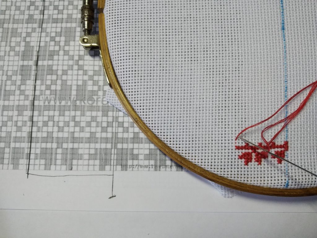 Оригинальную версию вышивают по определенному порядку. Перед началом работы обязательно находят середину, проверяют наличие двух иголок и всех цветов в наборе, расшифровывают их расположение и соответствие.