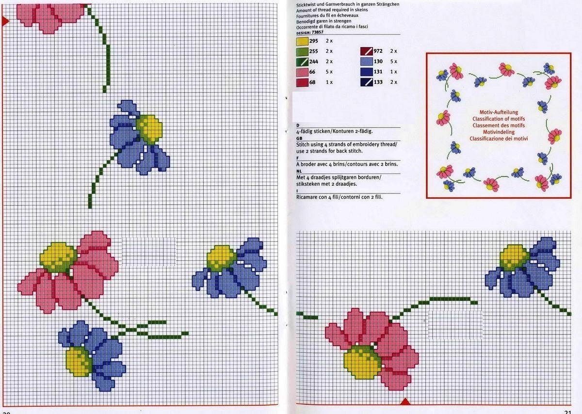 Проделайте такие манипуляции со всеми полевыми цветами, которые есть на схеме. Периодически сверяясь с ней, чтобы избежать переделывания работы. Не забывайте следить за тем, чтобы две стороны канвы смотрелись аккуратно и имели опрятный вид.