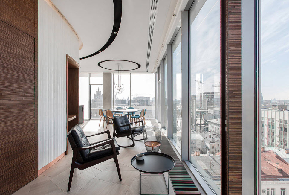 Дом с панорамными окнами небольших размеров — удачное решение для северных широт, поскольку такие конструкции почти не снижают теплоизоляционные качества помещения.
