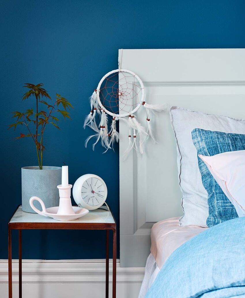 Если вы справедливо не хотите перегружать спальню синими тонами, то можно остановиться лишь на аксессуарах и текстиле в соответствующей палитре. Они привнесут нотку спокойствия практически в любой интерьер. Поскольку центром любой спальни служит кровать, то прежде всего следует задуматься над ее оформлением.