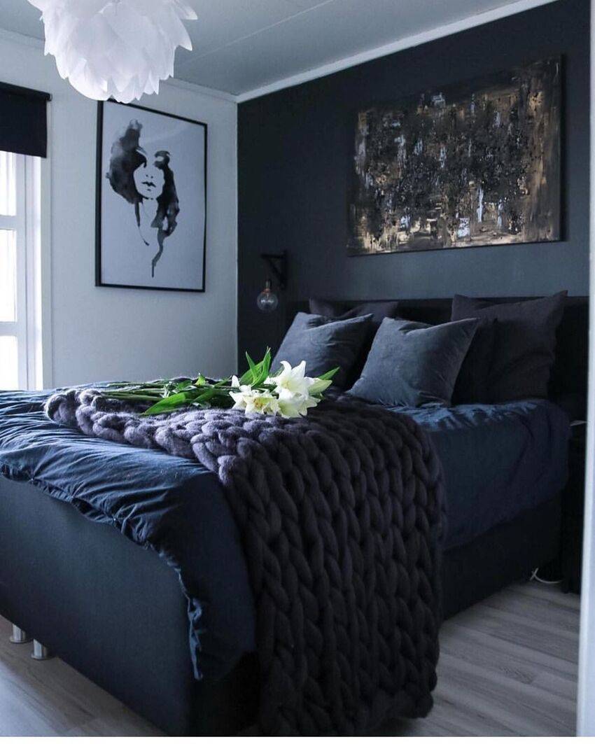В интерьере спальни чёрный следует использовать в качестве акцента