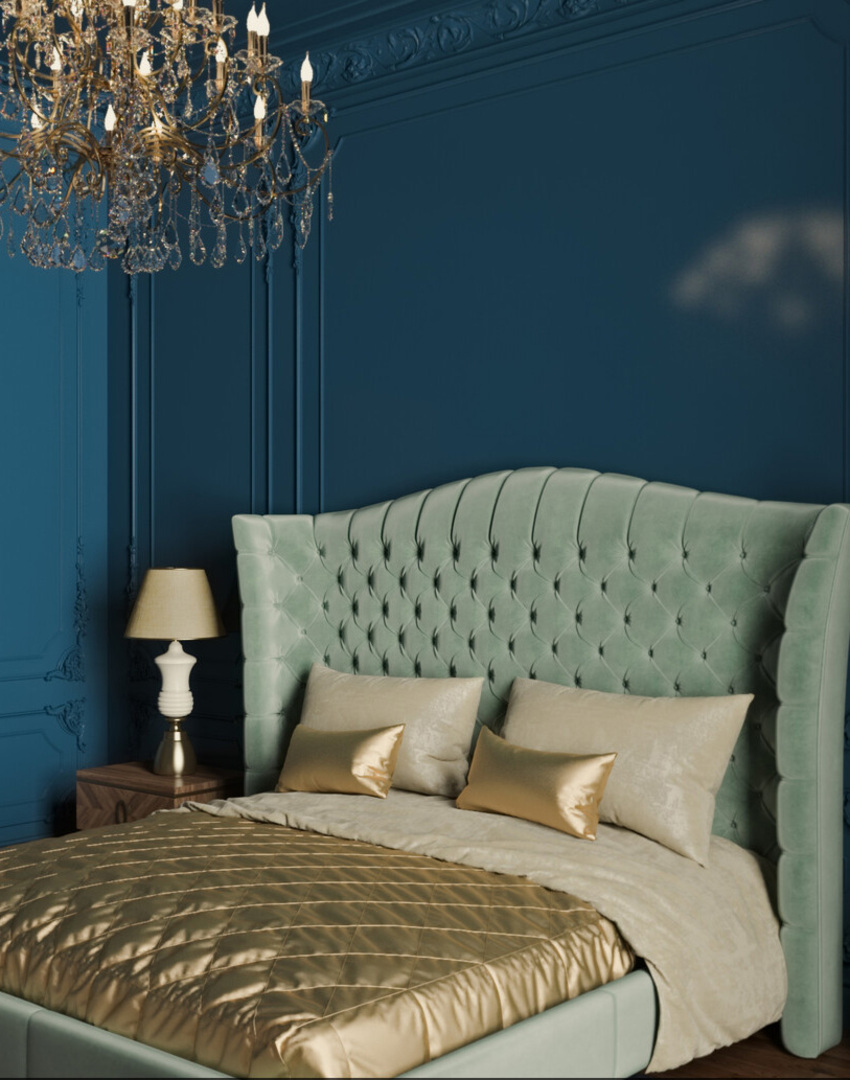Цвет является глубоким, максимально насыщенным и ярким. Он идеально подходит для обустройства спальни в современном стиле.