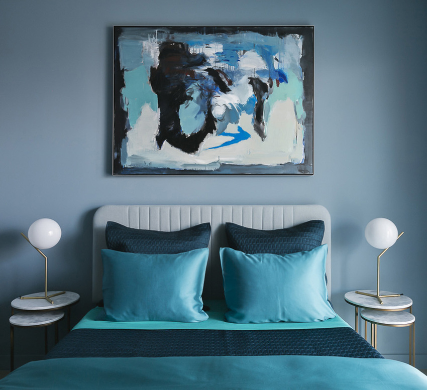 - Насыщенный голубой — наполняет пространство свежестью, делает комнату воздушной, и комфортной