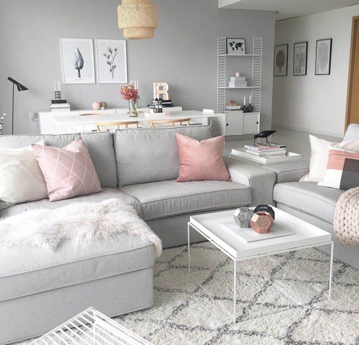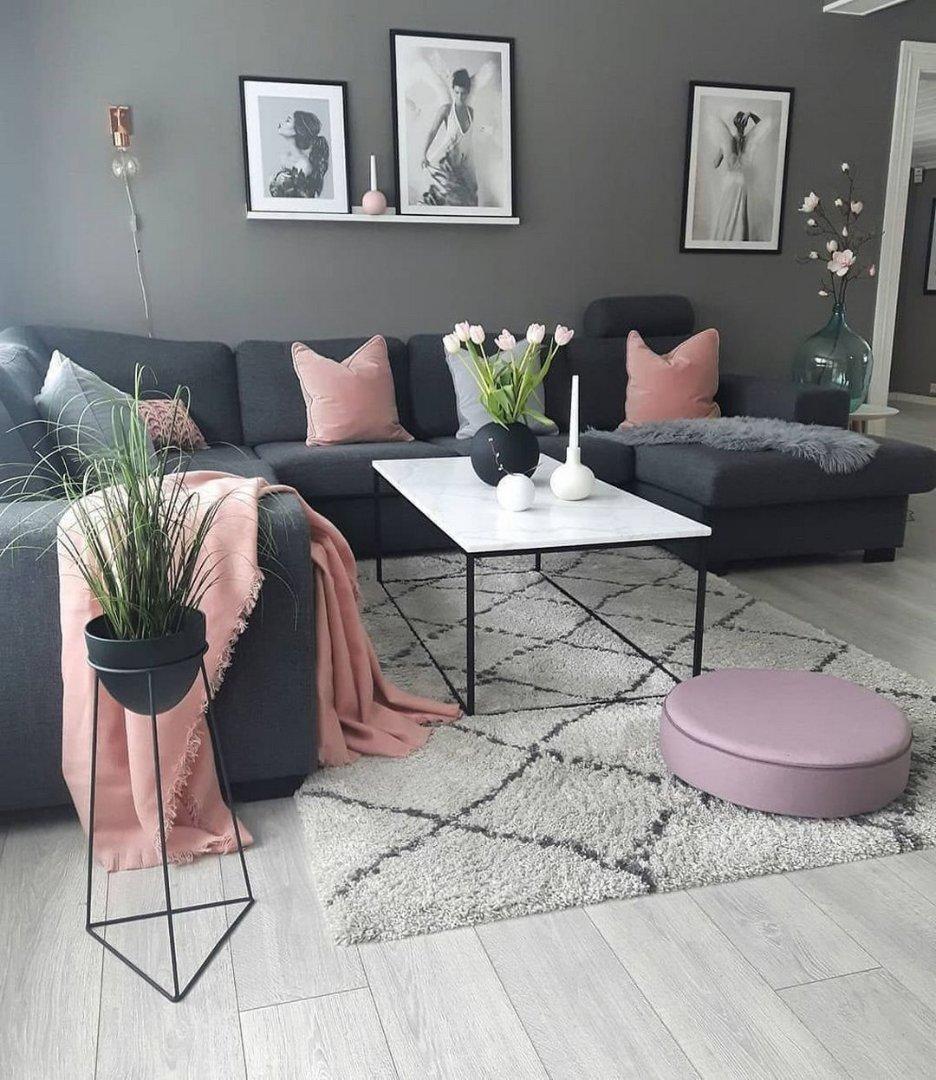 | Яркий декор | Чтобы разбавить серый цвет можно использовать яркие аксессуары для гостиной. | 1. Декоративные подушки лиловых или розовых оттенков больше подойдут для светло–серого дивана. С таким украшением атмосфера станет более легкой и романтичной, а мягкая мебель не будет казаться скучной. 2. Ярко-фиолетовые однотонные подушки и комнатные растения добавят интерьеру роскоши, света и уюта. 3. Всегда в тренде остается мягкое сочетание всех оттенков серого цвета и фисташкового. Подушки такого тона отлично подчеркнут серебристый диван, добавят легкой прохлады дизайну. В тон подушкам рекомендуется подбирать и шторы. 4. Бирюзовые подушки на светлом диване создадут ненавязчивую атмосферу с деревенскими мотивами в стиле Прованса. |