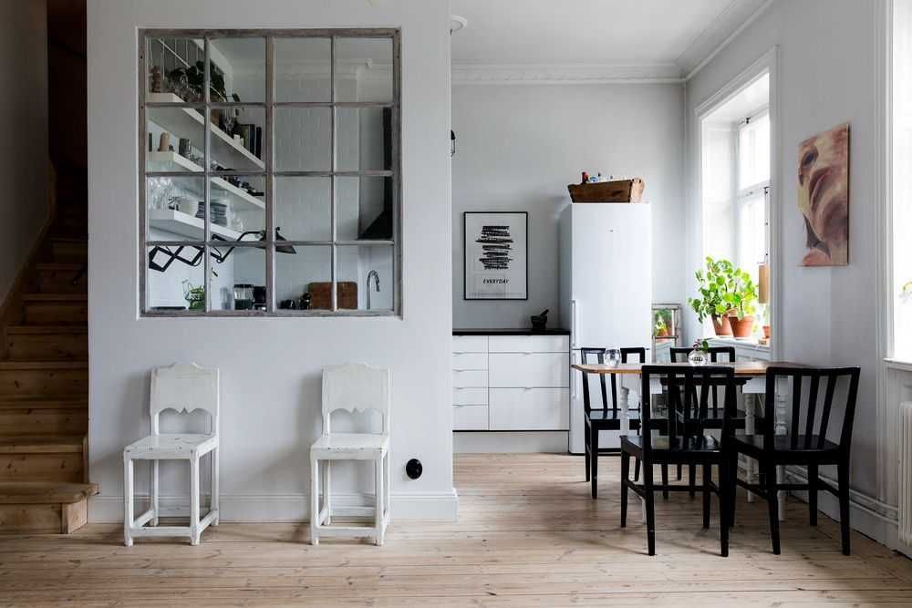 На помощь может прийти межкомнатное окно. В стене можно прорезать оконный проём и застеклить его, тогда препятствие на пути лучей света будет частично устранено.