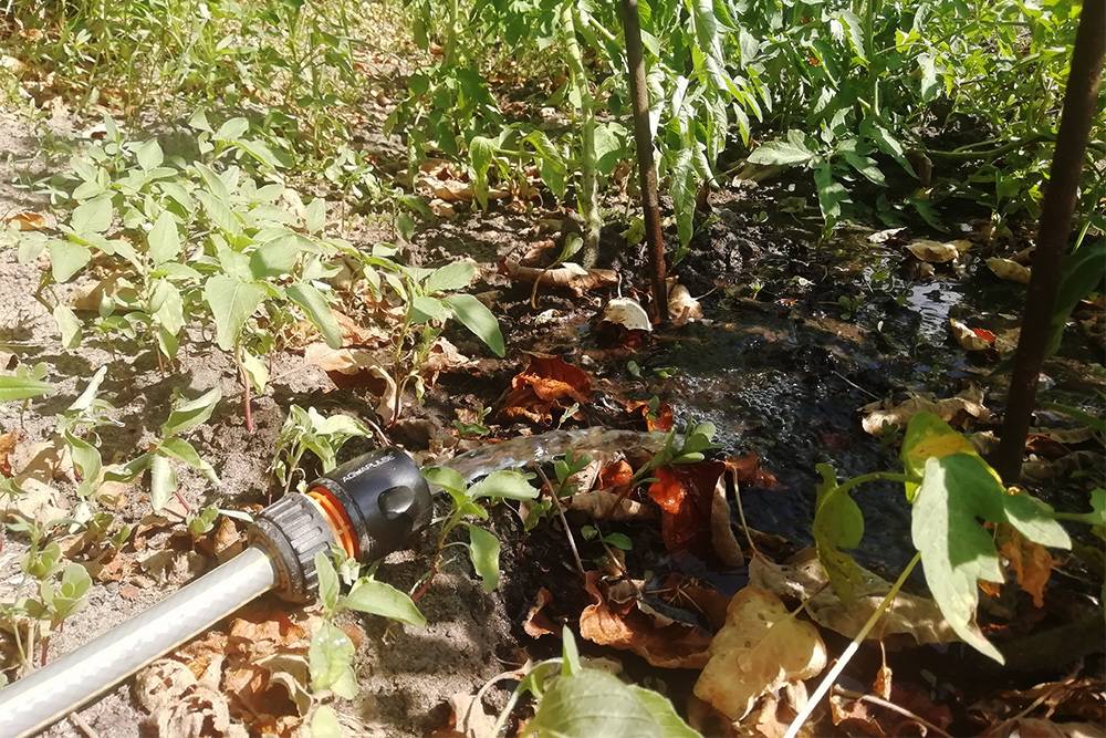 Капельный полив. Основа системы — это специальные шланги с микроотверстиями, через которые прямо под корень растениям капает вода. Такие шланги соединяют друг с другом и укладывают на грядки. Когда все готово, достаточно включить воду, и весь огород будет поливаться сам.