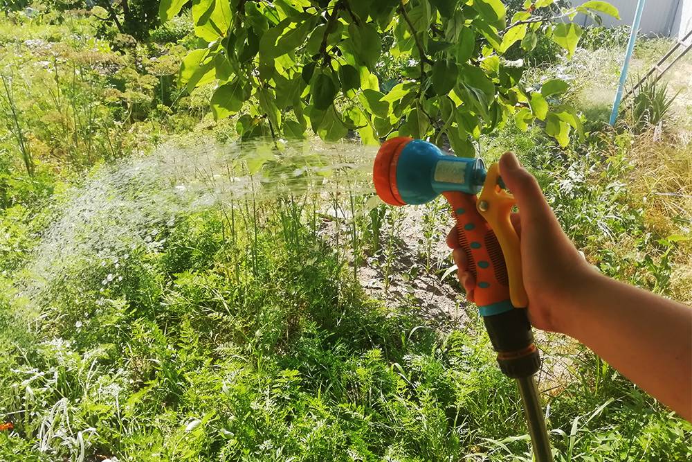 Кроме того, дождеватели чувствительны к давлению воды. Как только давление у нас падало, струйки воды из разбрызгивателя тоже слабли. Площадь полива уменьшалась, и дождеватель — он был у меня один — приходилось переставлять чаще. Иногда он просто переставал крутиться, и нужно было снова подключать пистолет-распылитель и поливать грядки вручную.