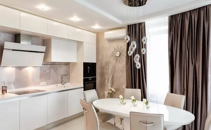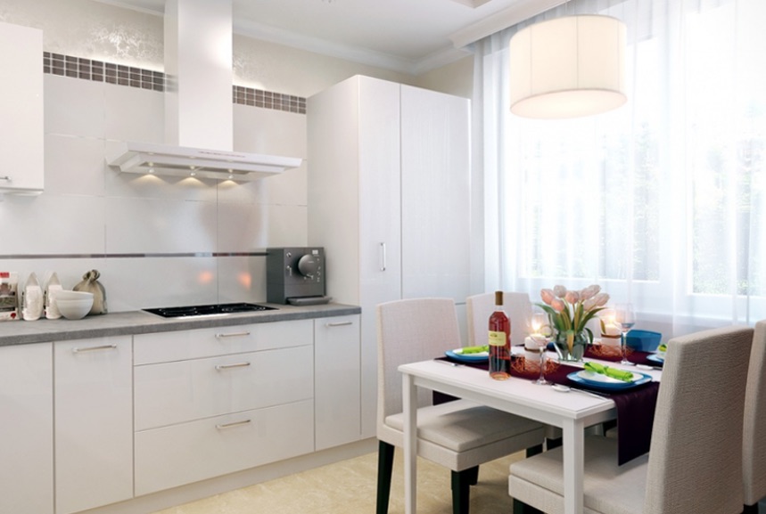 Не обойтись без главных атрибутов в дизайне 11-метровой кухни: