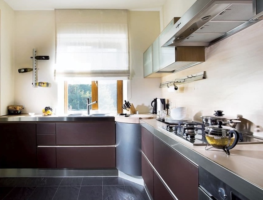 Очень важно сделать так, чтобы все было под руками, но при этом не загромождать небольшую кухню громоздкой мебелью