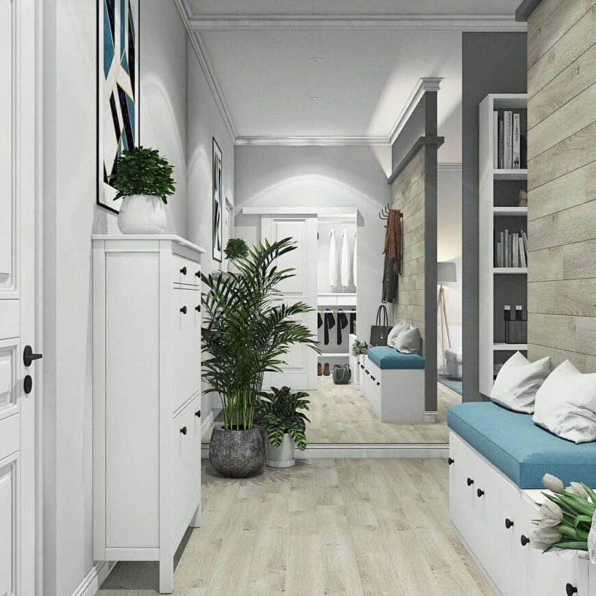 В зависимости от площади и формы коридора посмотрим, какие могут быть варианты обустройства.