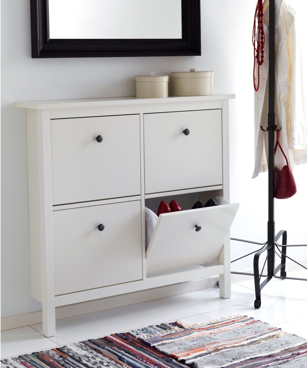 Тумбы от икеа для обуви в прихожую рекомендуется выбирать с закрытыми отсеками. Такие модели выглядят более эстетично, закрывают внутреннее содержимое. В продаже присутствуют модели, совмещающие в себе классический комод и тумбу для обуви. Такая мебель более объемная, однако и более функциональная.