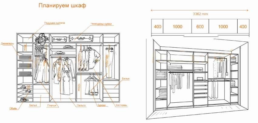 Важно грамотно распределить внутреннее пространство шкафа купе