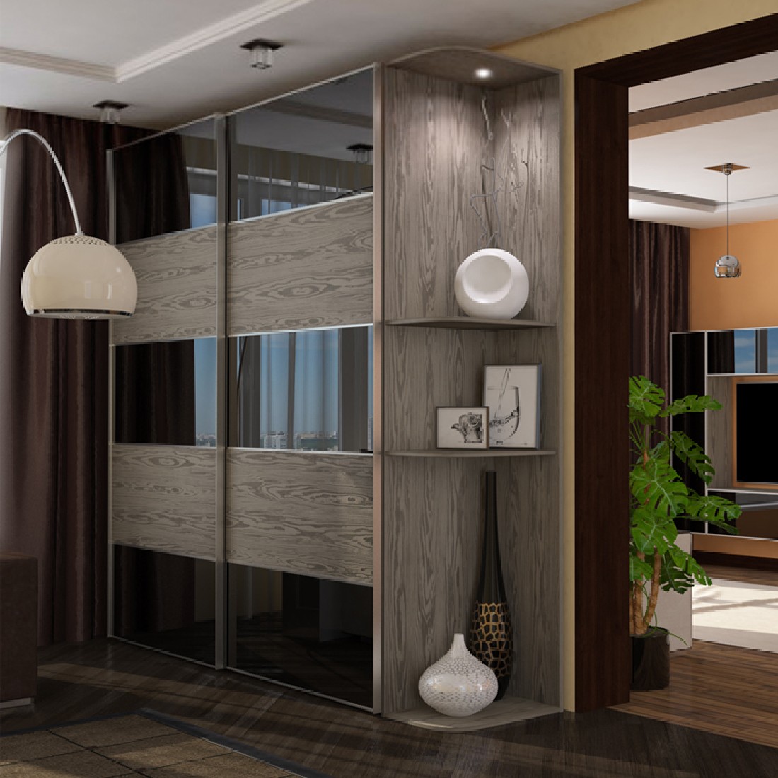 Своими руками легче изготовить прямоугольный шкаф купе, радиусные с криволинейной поверхностью под силу профессионалам. Самым удобным местом для установки является ниша. Привлекательность такого расположения в том, что малоудобное место становится полезным, практически не отражаясь на жилой площади.