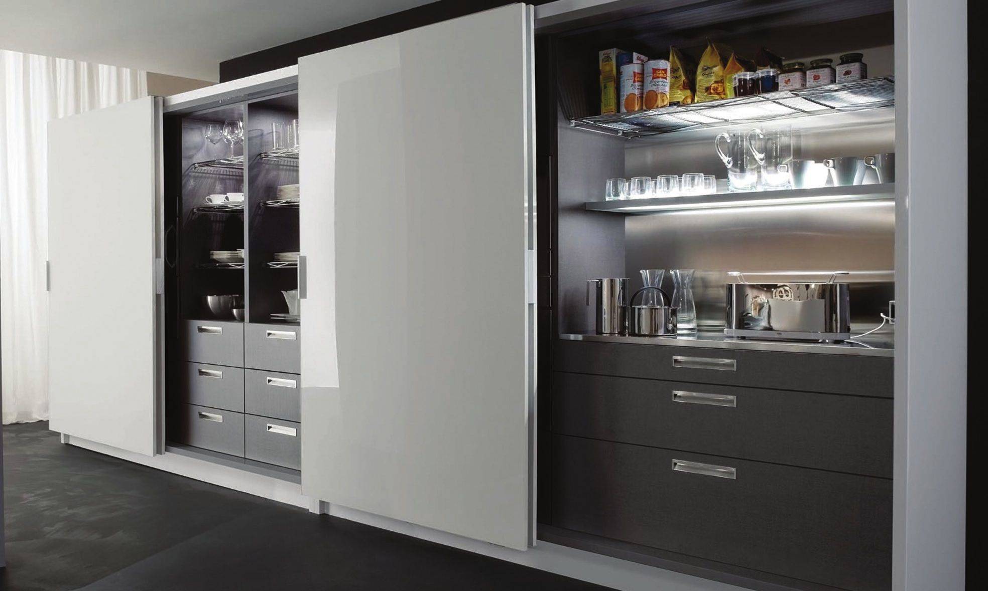 Большой кухонный шкаф-купе может выступать универсальным хранилищем, заменяющим другие предметы мебели, такие как навесные шкафчики для посуды, кладовая для запасов продуктов, нижние шкафы для хранения крупных кастрюль и сковородок. Таким образом, купе для кухни чаще всего занимает всю стену и оборудуется модулями, предусматривающими место для всего многообразия кухонных принадлежностей.