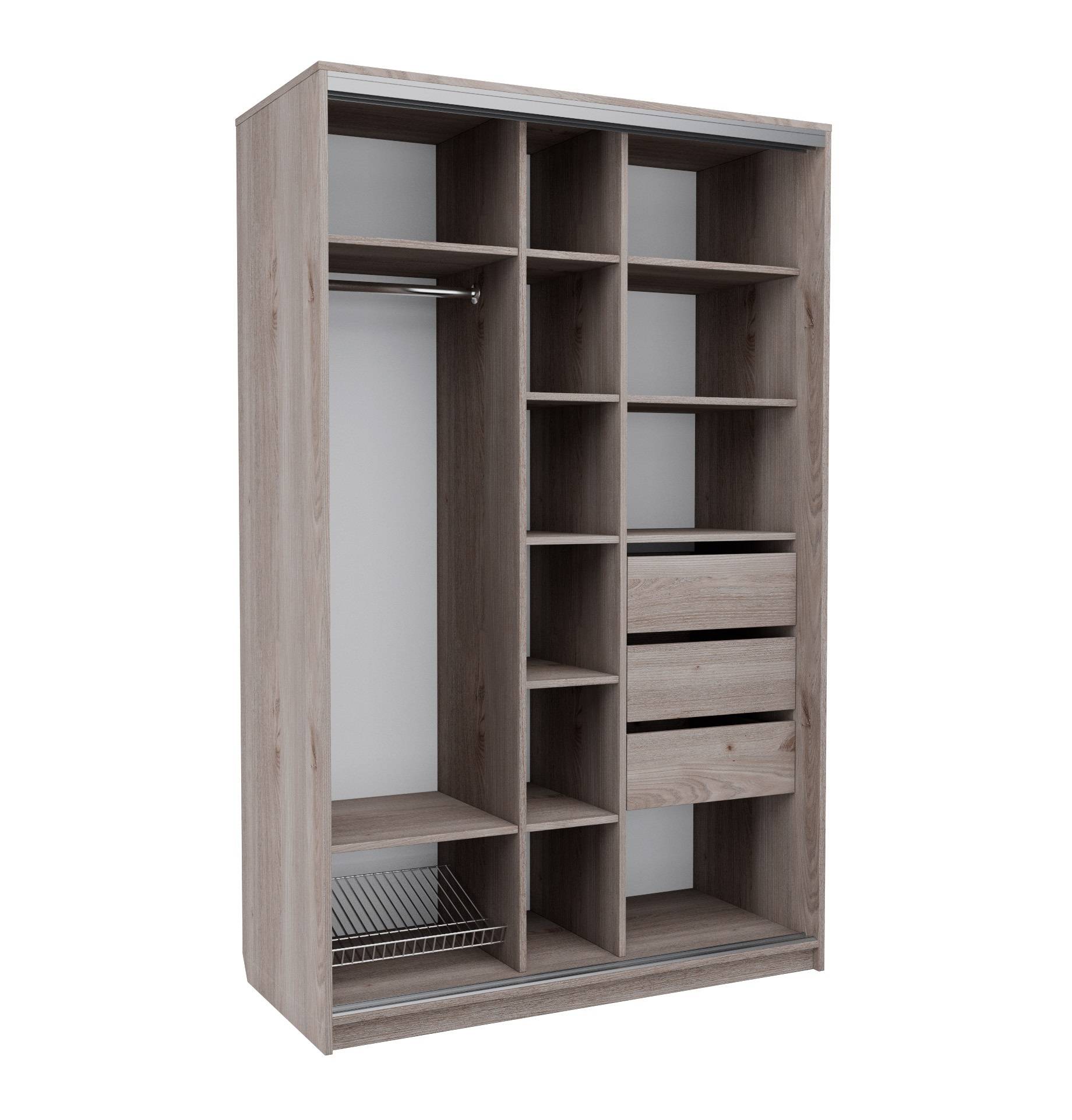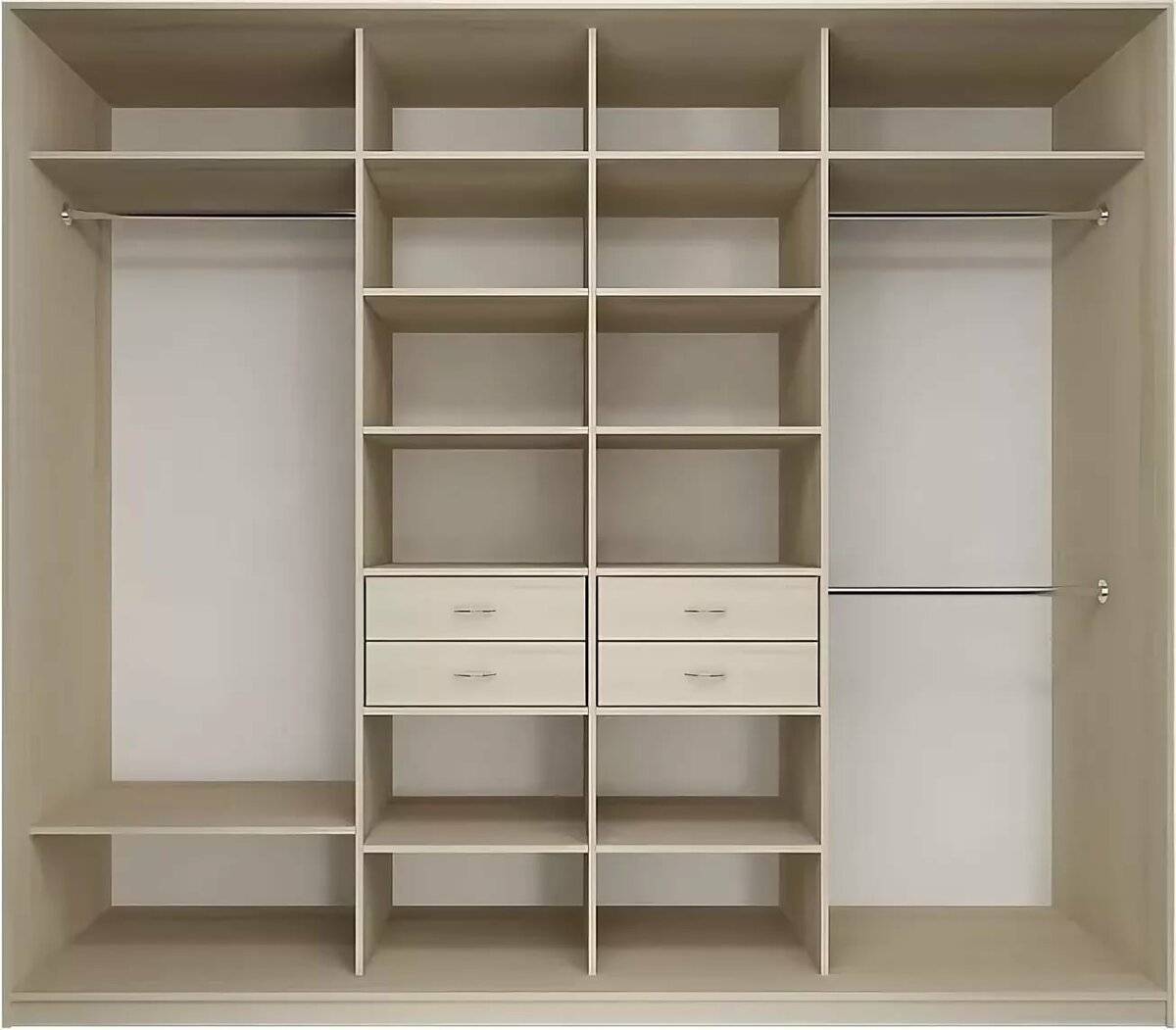 Шкаф-купе наполняется вариантами полок и ящиков, в зависимости от потребностей его обладателя.