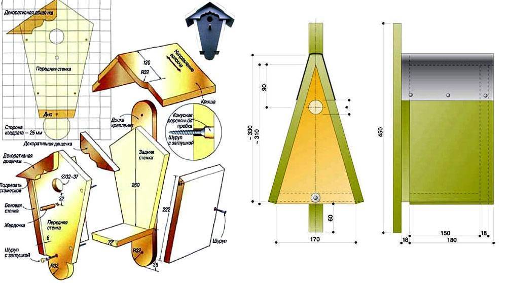Как сделать одиночный и коллективный домик для синичек, помогут разобраться эти чертежи