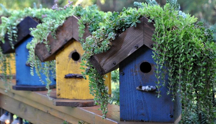 Скворечники, выполненные из тонких листов фанеры и имеющие яркий окрас, носят исключительно декоративную функцию. Птицы редко заселяются в такие домики. При этом декорирование материалами природного происхождения в виде веток, коры или мха станет отличным решением. Кроме этого, они маскируют птичьи домики, что оберегает их от хищников.