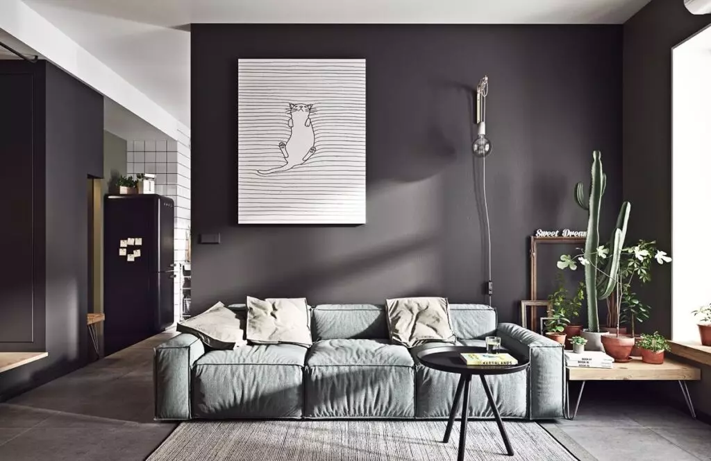 - Выберите базовый цвет. Именно базовый цвет будет доминировать, а потому решение по нему нужно принимать взвешенно. Если это что-то из нейтральной палитры, вам будет намного проще привести к общему знаменателю не только акценты, но и цвета стен, потолка и пола.