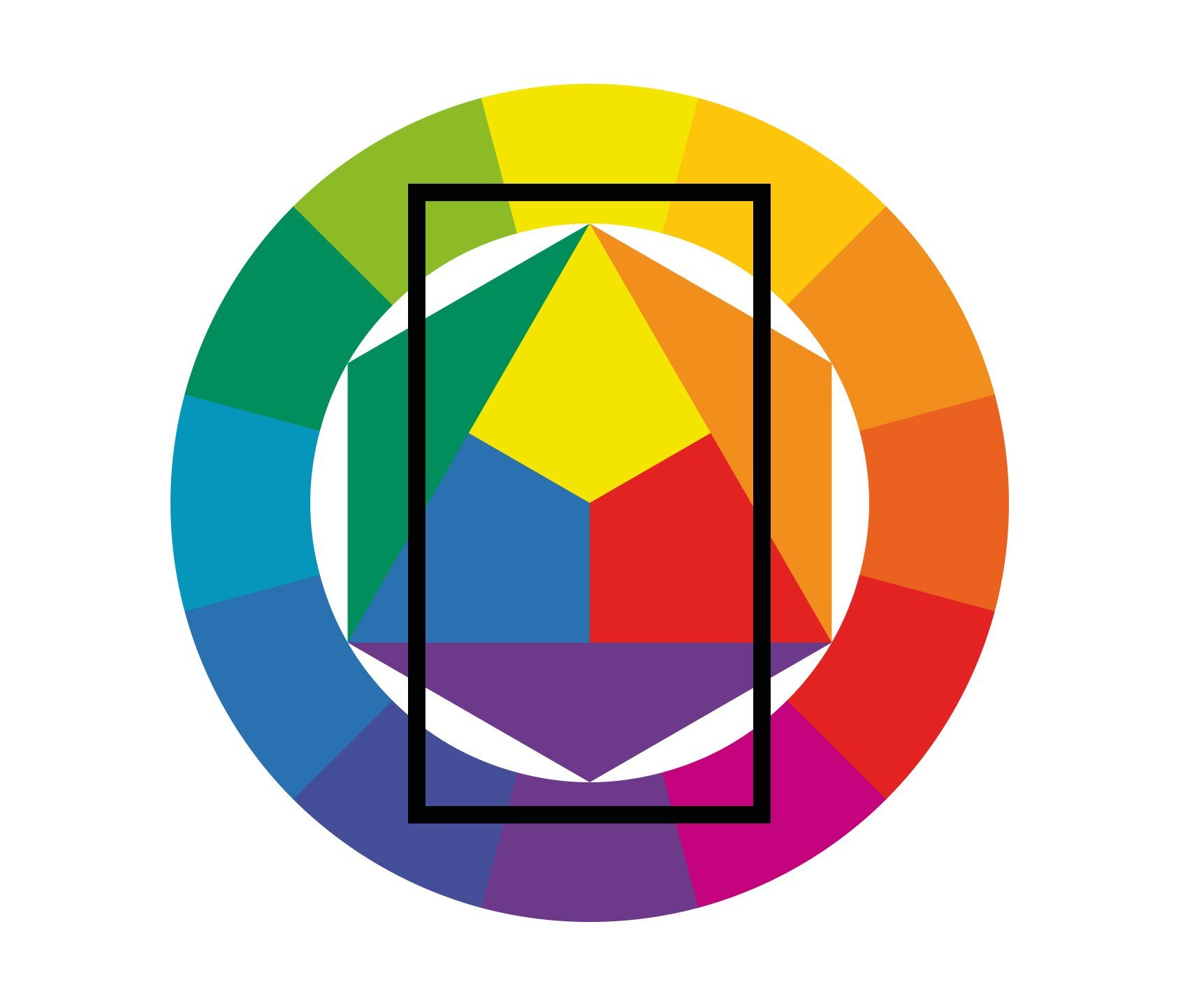 5. Когда трёх цветов недостаточно, можно выбрать четыре. Например, квадрат, наложенный на круг Иттена, образует сочетание тетрады: все четыре цвета гармонируют между собой.