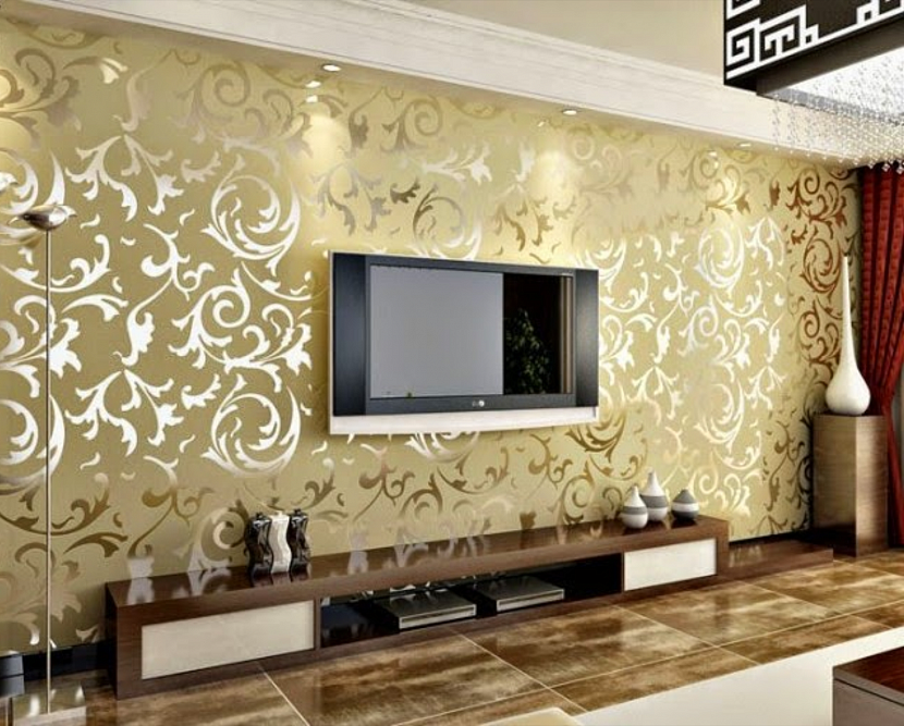 В случае с золотыми обоями выбранный оттенок занавесей желательно подчеркнуть, дополняя пространство некрупными функциональными предметами того же тона. Для этого отлично подойдут цветочные горшки, рамки для фотографий, элементы обивки, текстильные изделия.