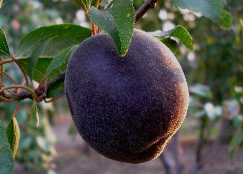 Дерево черного абрикоса очень компактное, невысокое, не занимает много места, не загущается и почти не требует обрезки. Эту особенность сорт получил от своего алычового родителя. Плоды очень крупные, красивые, с нежной «пушистой» кожицей, которая в полной спелости легко отстает от мякоти, стоит только задеть ногтем. Листья не «абрикосовые», мелкие, больше по форме и размеру напоминают алычу.