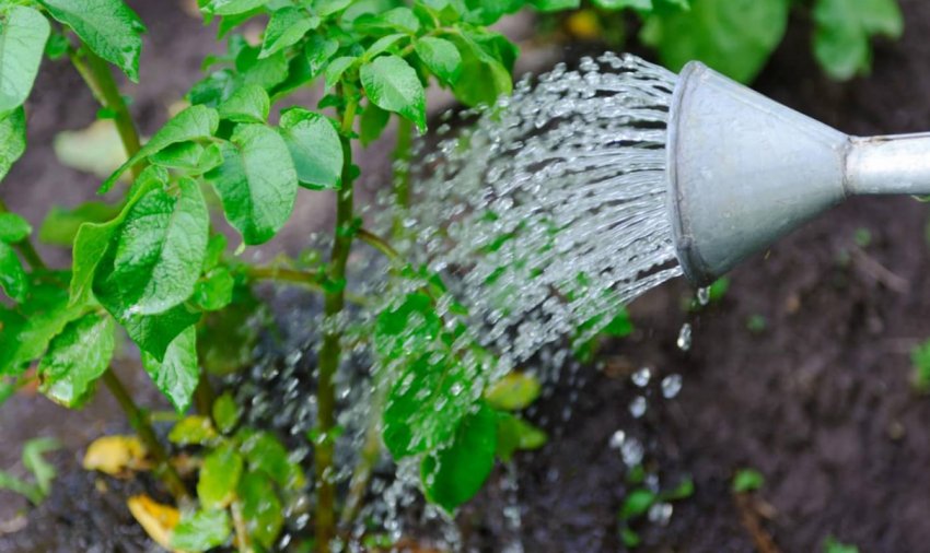 Под каждый куст вносят 2-3 л теплой отстоянной воды. Картофель Любава поливают вечером, когда отсутствует прямое воздействие солнца. После полива выполняют рыхление земли между рядами.