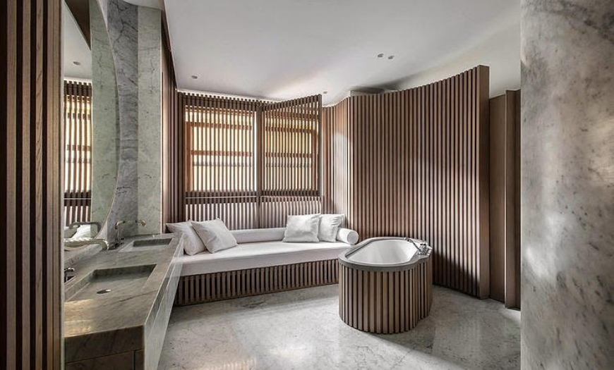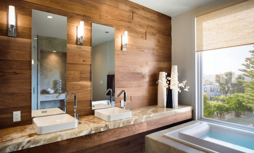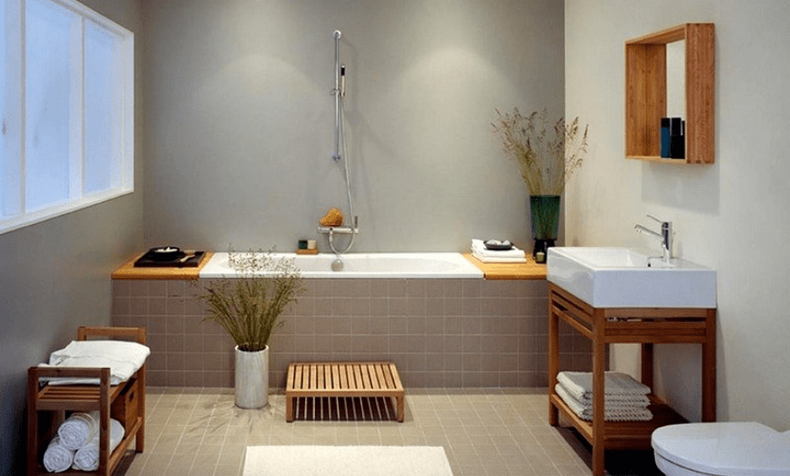 Дерево в ванной комнате — хорошая идея?