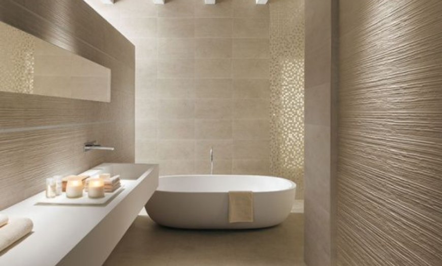 При комбинировании нескольких видов плитки стыки разных делать только на внутренних углах, тогда интерьер ванной будет выглядеть целостно и естественно.