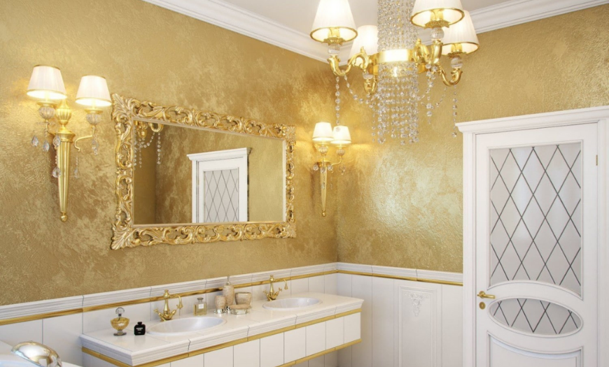 Освещение в ванной должно быть максимально приближено к естественному, чтобы удобно было наносить макияж. Свет должен быть теплым, желтым. Целесообразно было бы установить подсветку зеркал.