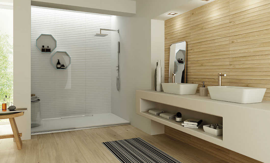 Душевая комната нуждается в материалах, которые гигиеничны, практичны, устойчивы к действию влаги, не восприимчивы к температурным перепадам. На выбор также влияет их ценовая доступность.
