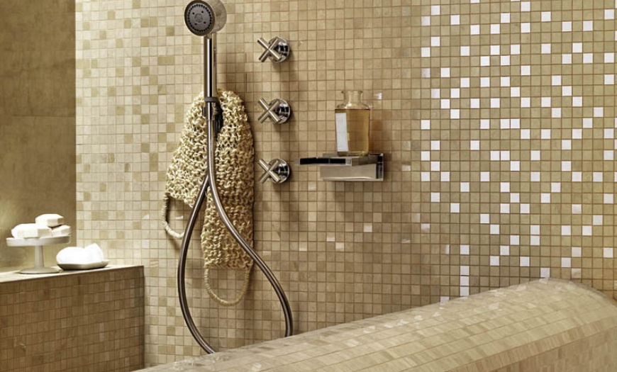 Выигрышно и стильно смотрятся стены, выложенные из мелких фрагментов. Мозаичные элементы хорошо сочетаются с разными фактурами. При желании создают мозаичные панно. Обеспечит долговечность венецианская мозаика. Может применяться смальта с матовым налетом, мрамор, камень, полимер.