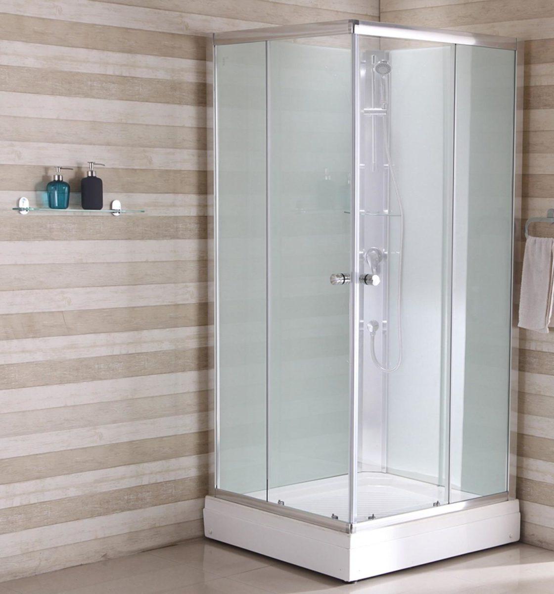 - Размеры. Специалисты рекомендуют рассчитать всё таким образом, чтобы между сантехническим оборудованием и кабинкой сохранялось расстояние не менее 30 сантиметров. Также следует учесть и тот факт, что для комфортного использования перед боксом следует оставить как минимум 80 на 60 сантиметров свободной площади. В противном случае заходить и выходить из него будет неудобно. Оптимальным размером для небольших ванных считаются изделия с габаритами 80 на 80 сантиметров, но для очень маленьких комнат существуют модели 70 на 70 сантиметров.
