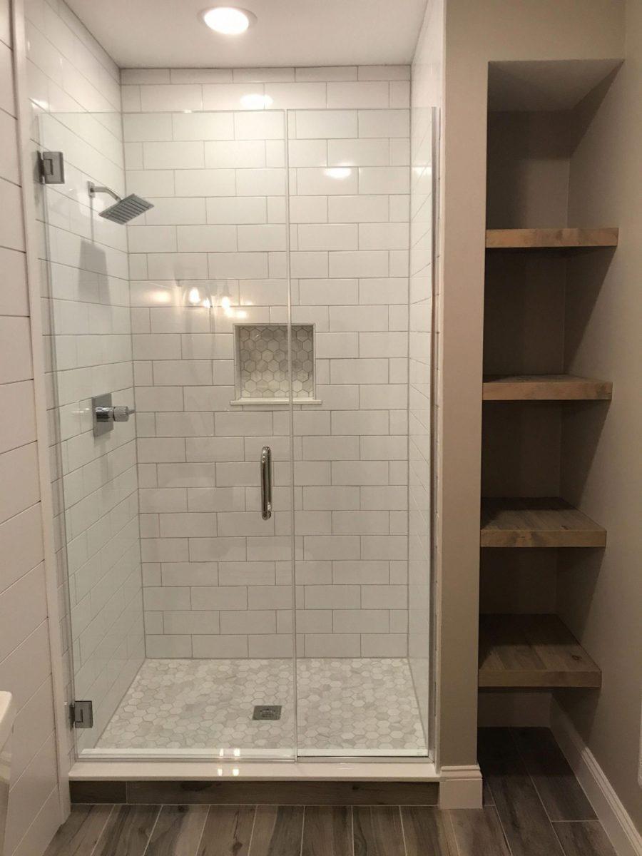 Самодельная душевая из плитки и стекла