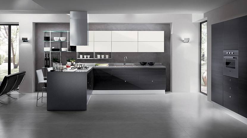 Пепельная просторная кухня в стиле модернИсточник sdp-interior.ru
