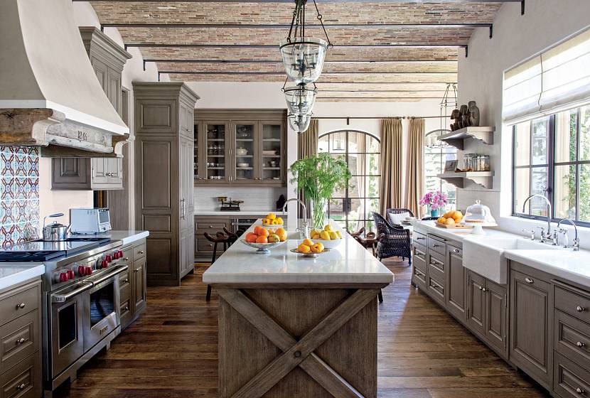 Оригинальное оформление подойдет кухням в частных загородных домах. Популярность такого интерьера непрерывно растет, но характерные черты остаются такими же: