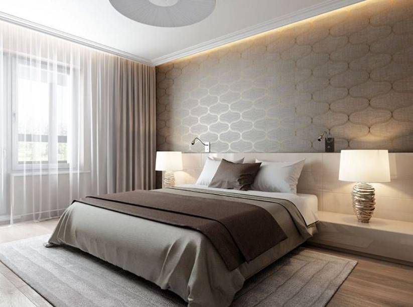Это направление подразумевает минимализм и четкие линии. Такой стиль актуален для небольших спален. Однотонные обои лучше выбирать в белом и сером цвете
